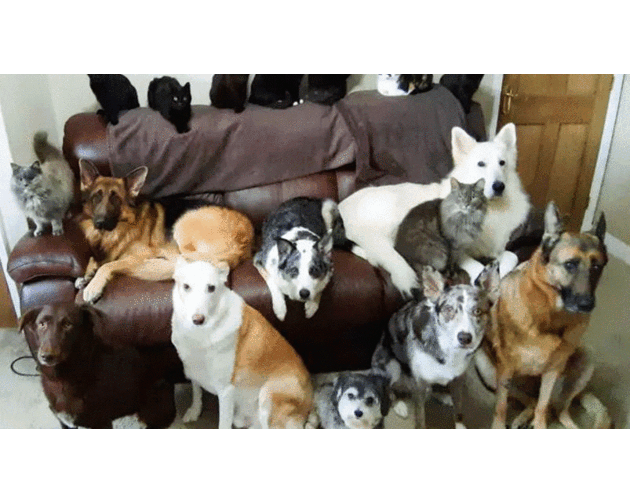 30-летняя Кэти Смит, совместно проживающая со своей семьёй, а также 8-ю собаками и 9-ю кошками в частном доме в городе Колуин-Бей (графство Конуи, Уэльс), в прошлом месяце запланировала сделать коллективную фотографию своих разношерстных питомцев.