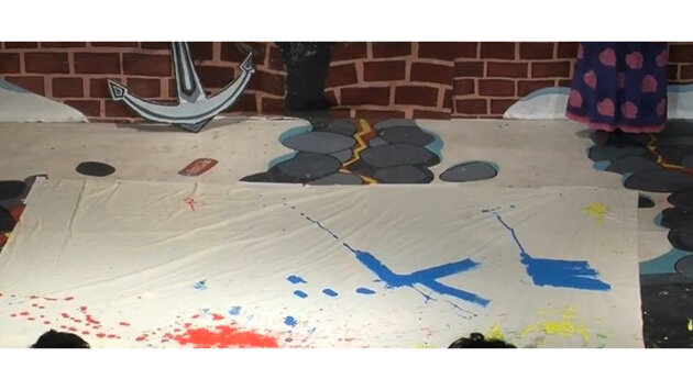 В одном таком ролике художник разбрызгивает краску задом, а затем размазывает ее по холсту, удерживая кисть тем же местом.
