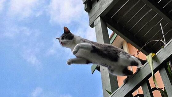 На видео попала спасательная операция, организованная любителями котиков. Неравнодушные люди обнаружили кота, который непонятным образом попал на карниз здания на высоте нескольких этажей. Если бы кот оступился, он мог бы упасть и разбиться. Белоснежного красавца столкнули длинной палкой, после чего он спланировал на растянутый возле земли тент.