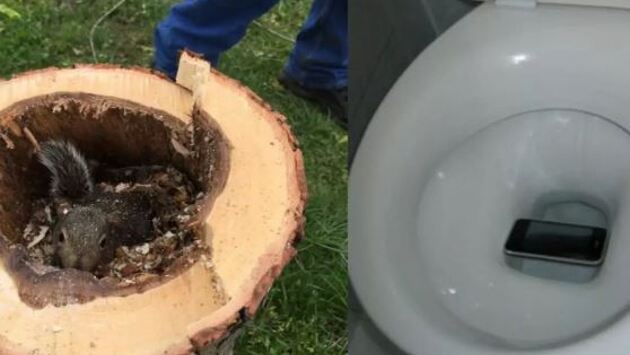 Ужас перфекциониста 2. И снова ужас перфекциониста. Если бы телефон был бы на сантиметр короче, то точно бы прошел в слив унитаза. Человеку снова повезло.