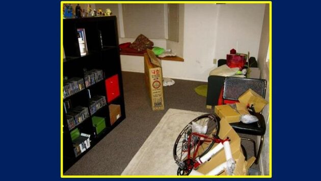 Посмотрите на коробку, стоящую посредине комнаты. В вырезе для рук заметны пара глаз. Да, мальчик смотрит прямо на Вас и наверняка в момент когда его фотографируют улыбается.