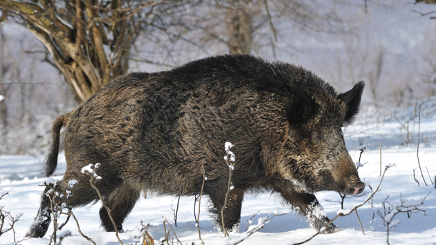 Крупный кабан вышел из моря и напал на рыбака