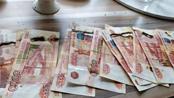 На опубликованной фотографии запечатлены 65 тысяч рублей, лежащие на столе. Некоторые купюры имеют темные пятна, а некоторые и вовсе оказались прожжены.