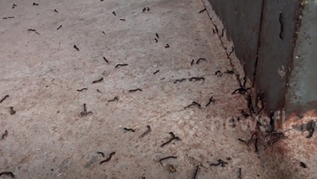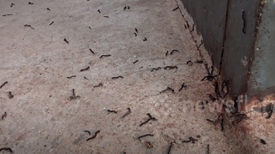 Тысячи гусениц заполонили дом жительницы таиландского города Ясотхон и выгнали ее на улицу. Кадры, снятые очевидцем, опубликовал сайт Newsflare.