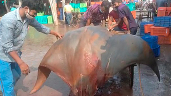 Когда гигантского ската вытащили на берег, посмотреть на него собралась толпа зевак. В тот же день небывалый улов был продан с аукциона. Рыбакам удалось выручить за него 50 тысяч рупий (около 50 тысяч рублей).