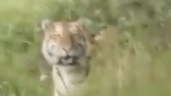 На записи тигр подходит близко к двум мужчинам в Приморском крае, один из которых ведет съемку, в то время как второй сидит в машине. «Кисуня, иди гуляй. Иди, иди погуляй. Дай удочки нам забрать, мы рыбачим. Мы сейчас заберем и уедем», — произносит автор видео за кадром.