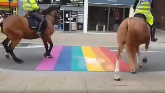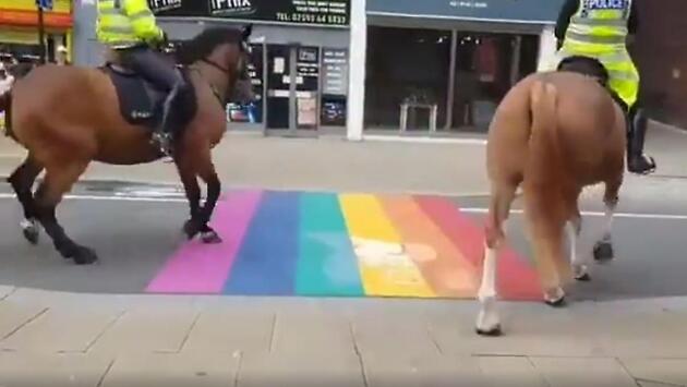 Смотрите видео и узнайте о толерантных лошадях, которых запечатлели на улицах британского города Шеффилд. Там на проезжую часть нанесли радужную разметку в знак поддержки сексуальных меньшинств. Когда к разметке приблизился конные полицейские, скакуны отказались вступать на окрашенный отрезок улицы. Комментаторы отметили, что лошади оказались терпимыми не столько из-за сочувствия к представителям нетрадиционных ориентаций, сколько из-за недоумения.