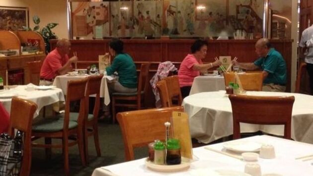 Эти посетители ресторана будто сговорились на такой дресс-код.