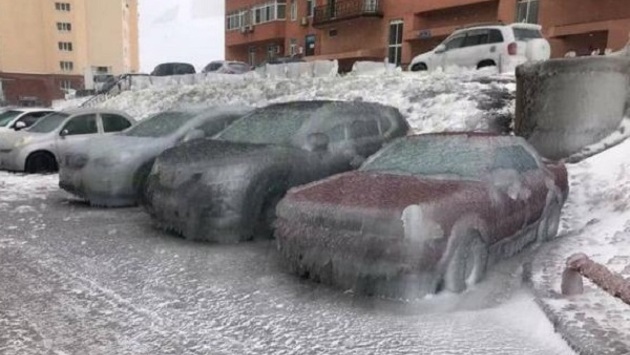 Иностранцев удивили фотографии ледяных машин из Владивостока