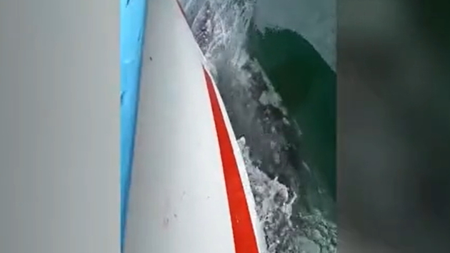 На видео видно, как над поверхностью воды поднимается кит, который находится под лодкой. Люди, находящиеся внутри, были шокированы происходящим, так как кит поплыл вместе с этой лодкой на своей спине.