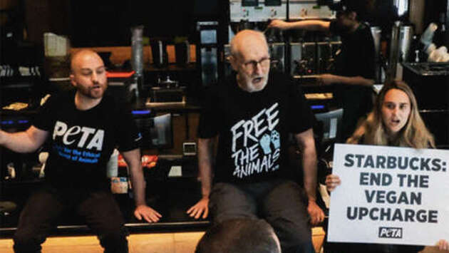 Звезда фильма "Зеленая миля", сериалов "Американская история ужасов" и "Наследники" Джеймс Кромвелл в рамках акции PETA приклеил себя к столику в нью-йоркской кофейне Starbucks, пишет Washington Post.