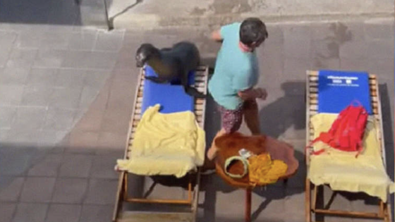Морской лев прогнал отдыхающего с шезлонга и занял его место