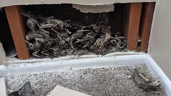 «Я проделал дыру в стене, чтобы проложить проводку у себя дома, и нашел около 30 птичьих скелетов, погребенных внутри», — написал мужчина. На опубликованной им фотографии заметно, что найденные останки птиц нагромождены друг на друга.