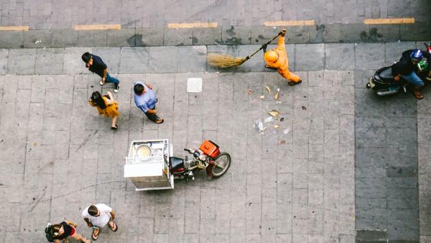 Уборщик пытался убрать песок в сильный ветер и насмешил интернет