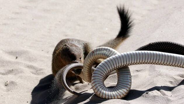 Питон попытался съесть мангуста и стал жертвой нападения его семейства