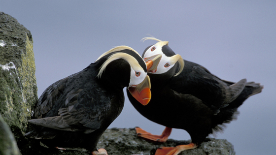 Хохлатый тупик — морская птица, ныряющая с поверхности и приспособившаяся к более холодным водам северной части Тихого океана. Это самый крупный из всех видов и пород тупиков между северо-западной Аляской и центральной Калифорнией. Золотые перья хохлатого тупика появляются только во время брачного сезона. Когда этот вид готов к гнездованию, они зарываются в края скал. Хохлатые тупики — искусные охотники, способные поймать и удержать во рту до 20 рыб за раз, чтобы принести еду птенцам. Поэтому не стоит недооценивать тупиков из-за их причудливой внешности!