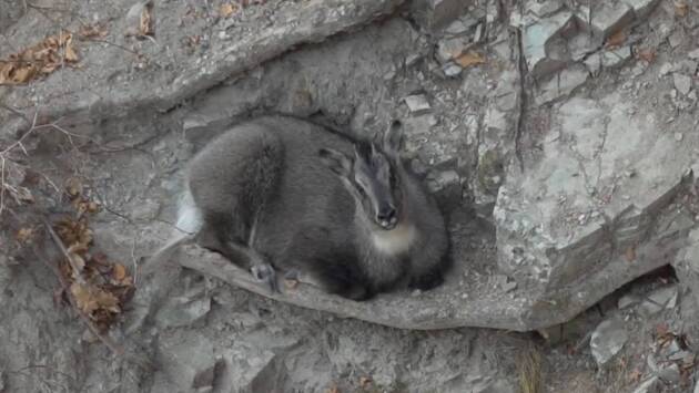 Приморский заповедник показал отдыхающего на скалах амурского горала