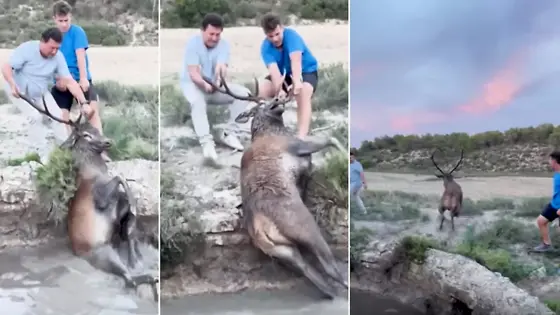В конечном итоге туристам удалось вытянуть животное на сушу, после чего оно стремглав бросилось к лесу, но через несколько метров остановилось, посмотрело назад, как бы благодаря своих спасителей.