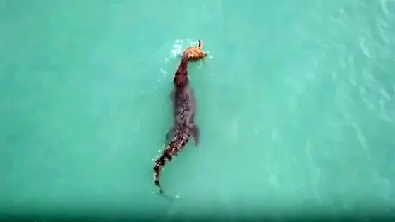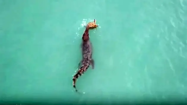 Со слов автора видео, зубастый хищник, схватив мощными челюстями жертву с панцирем, плыл в сторону пляжа и на протяжении более получаса пытался употребить в пищу пресмыкающегося, но вынужден был отпустить черепаху и отправиться на поиски более лёгкой добычи.