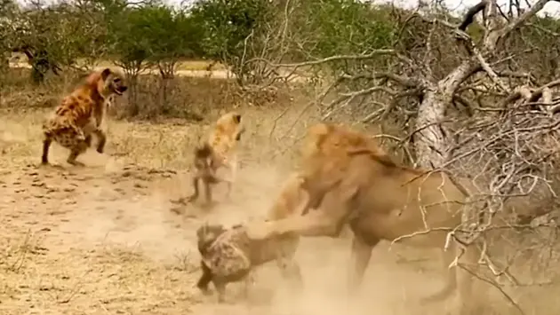 Гиены напали на льва и отбили своего сородича в Кении - видео
