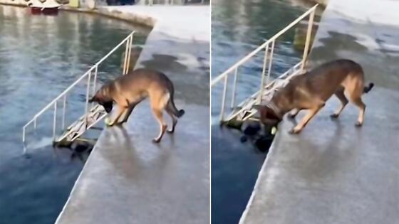 Судя по кадрам видеозаписи, размещённой на днях в популярном в Китае сервисе микроблогов Weibo, четвероногий затейник не страдает от одиночества, научившись развлекать себя самостоятельно, чем натренировал молниеносную реакцию и ни разу не упустил любимую игрушку в водоём, где находился, по всей видимости, владелец дисциплинированного питомца.