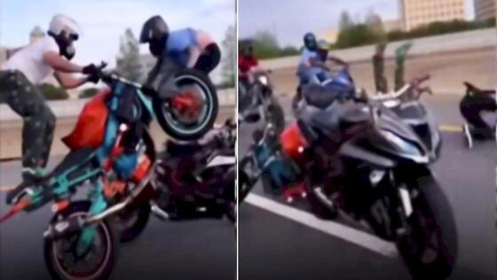 Зрелищный трюк закончился «бегством» мотоцикла, который сбил другого экстремала