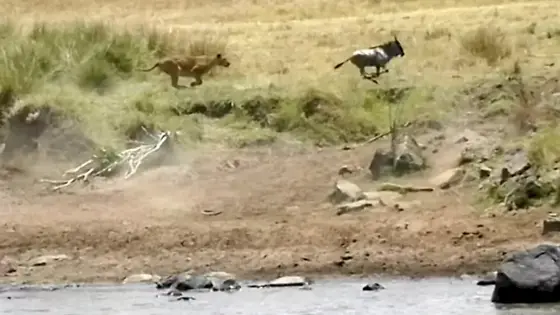 Антилопа, убежавшая от трёх крокодилов, угодила в засаду, устроенную львицей в Кении - видео