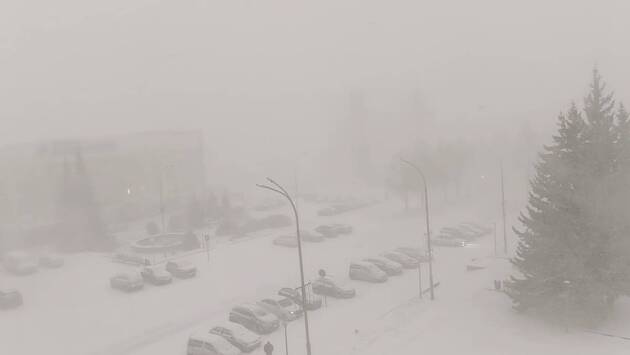 В городе Анжеро-Судженске Кемеровской области заметили редкое погодное явление. Гром и молния появились во время снежной бури, об этом сообщает Telegram-канал РИА Новости.