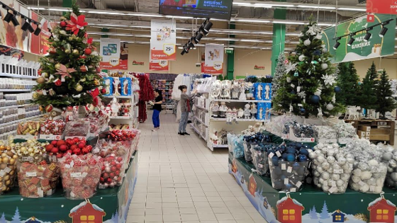 Первых новогодних красавиц с мишурой и гирляндами заметили в магазине Ашан. Цена елок варьируется от 119 до 16991 рубля. Покупатели рассказывают, что есть как маленькие настольные елочки, так и большие искусственные красавицы. Есть как просто зеленые, так и с эффектом заснеженных иголок.