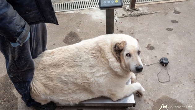 Волонтеры подобрали на улице 99-килограммового пса в Нижнем Новгороде