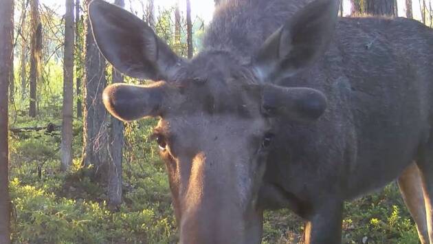 Заметивший фотоловушку в лесу стеснительный лось попал на видео. Кадры опубликованы в сообществе «Кабаны и другие звери» во «ВКонтакте».
