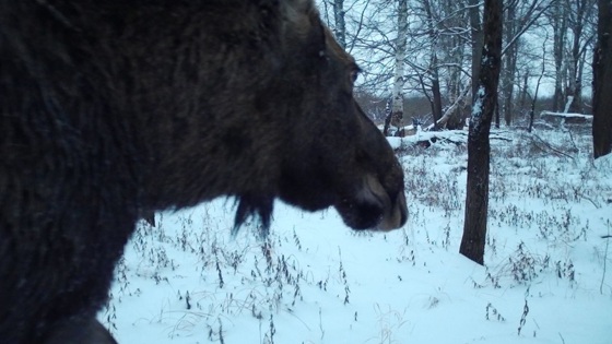 В объектив попали привычные для этих мест животные. Это, конечно, в первую очередь лоси - они легко преодолевают снежные сугробы в поисках пищи, обгладывают ветки и кору деревьев. Сняла фотоловушка и кабана - дикие свиньи в последние годы расплодились во многих районах области. На одном из снимков видна лиса. Число лис в регионе в последние годы также растет, особенно они ценят для жилья мелкую поросль на месте горельников.