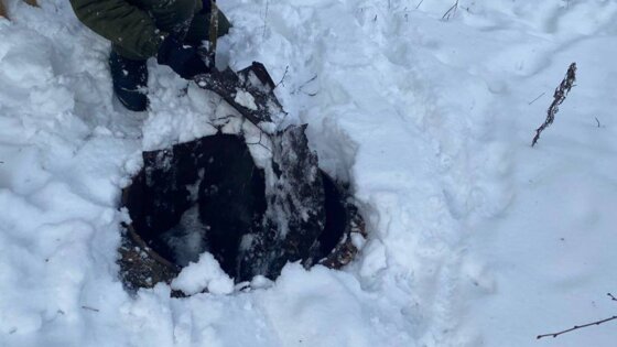 К посту прикреплены кадры, на которых запечатлен открытый колодец. Он находится рядом с колонкой, провал был не виден под слоем снега.