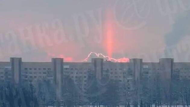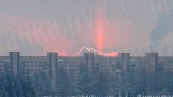 Возникновение оптического эффекта жители заметили на улице Турку и проспекте Непокорных. В размещенном ролике видно, как на фоне облачного неба проступает ярко-красная полоса света, которая тянется вверх.