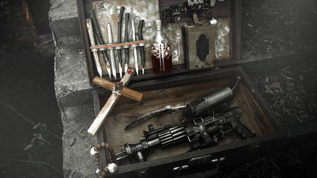 Предметы для уничтожения кровососущей нежити хранятся в большом старинном ларце, сделанном в виде Библии. Внутри находится ящик с небольшим пистолетом, латунной пороховницей и миниатюрной подзорной трубой. В другом отсеке «Библии» находится настоящая Библия, распятие, четки, флакон для святой воды, подсвечники, молоток и кол.