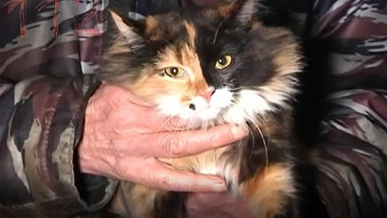 Жители успели эвакуироваться. Пушистую спасительницу хозяин вынес из опасной зоны на руках. Теперь она стала любимицей всего дома.