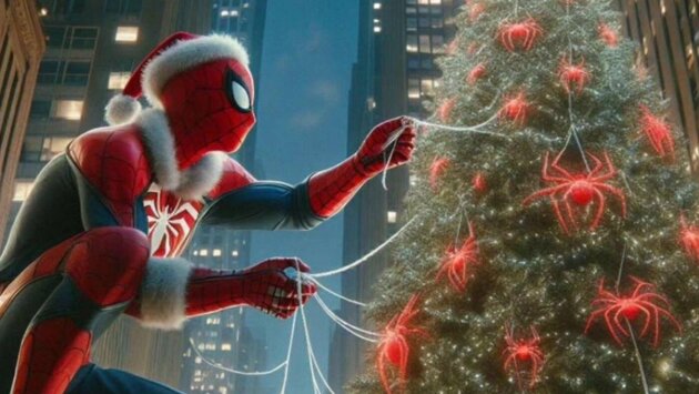 Нейросеть изобразила, как Человек-паук и другие персонажи наряжают елку
