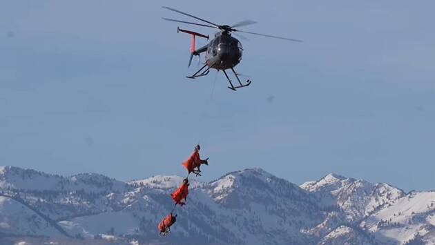 В американском штате Юта на видео попал процесс перемещения оленей на вертолете. Об этом сообщает ABC4 Utah.