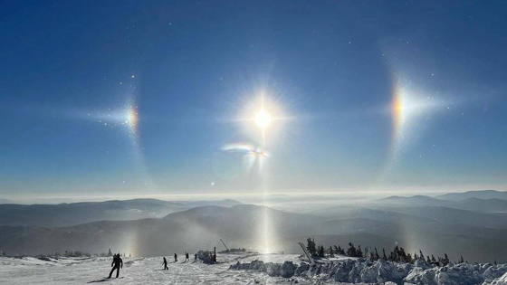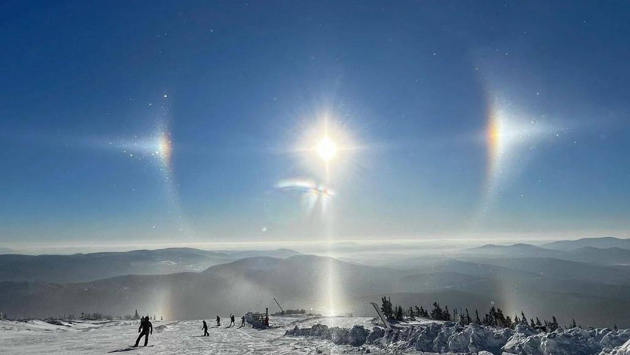 Жители и гости Шерегеша наблюдали в небе гигантский солнечный диск.