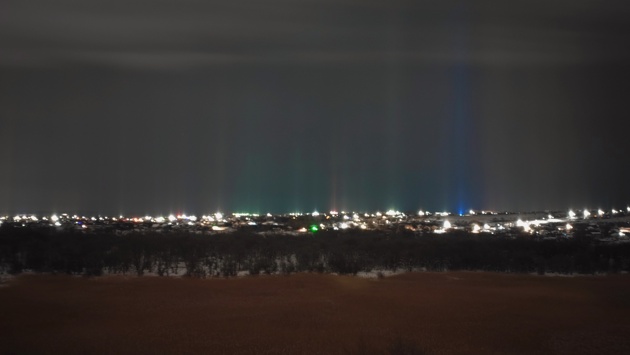 Ростовская область, 9 января 2024. DON24.RU. В небе над Ростовской областью зафиксировали световые столбы. Фотографии были опубликованы в сообществе «Подслушано в Каменске-Шахтинском» сети «ВКонтакте». Одна из возможных причин подобных световых явлений – оптическая. Так, некоторые свечения видятся человеку как какие-то столбы, все это связано с атмосферными процессами. «Это лазерное шоу с Марса», «Ну все, инопланетяне прилетели», «Это климатическое оружие испытывают , мне мой товарищ сказал, а ему его товарищ, инфа сотка!» – шутят пользователи Сети.