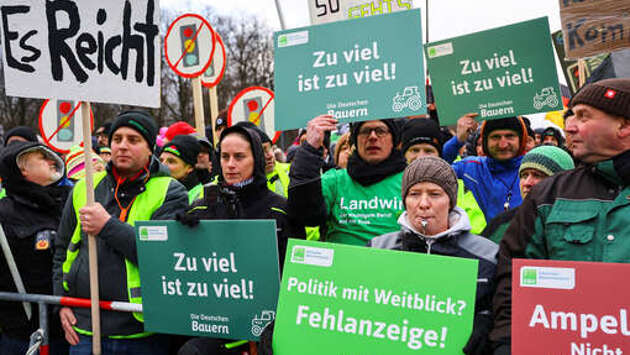 За этим последовали масштабные протесты. 4 января стало известно, что кабмин ФРГ решил скорректировать планы: льготы будут отменяться не сразу, а постепенно и не в полном объеме. Это не устроило фермеров, они решили не отказываться от протестов. 8 января германские фермеры возобновили проведение акций: они блокировали развязки на федеральных трассах в разных частях ФРГ, контейнерные терминалы в грузовых портах. Завершающая демонстрация прошла 15 января в Берлине, протестующие пригнали к Бранденбургским воротам 5 тыс. единиц сельхозтехники.