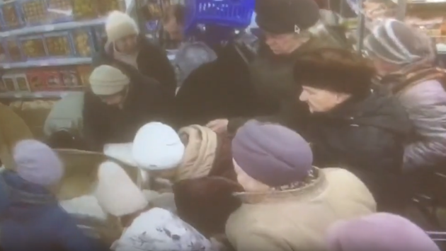 На кадрах видно, как люди жадно растаскивают пакеты с продуктом. Вокруг прилавка образовалась настоящая толпа. Однако, надо отдать должное жителям Рыбинска, обошлось без ругани и разборок.