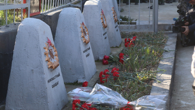 Под звуки военного оркестра участники возложили цветы и венки к месту братского захоронения советских воинов и могилам красноармейцев.