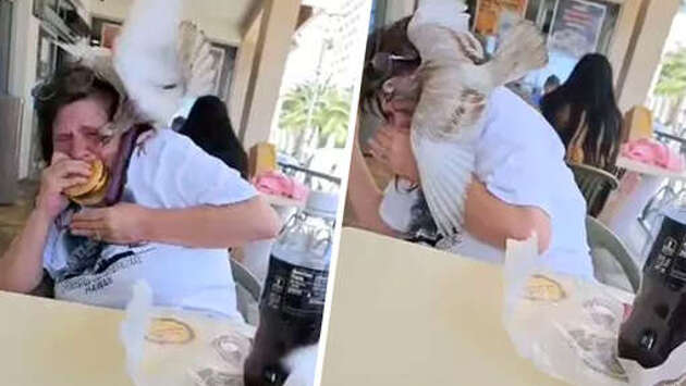 Голодный голубь напал на женщину и попытался отобрать ее еду из McDonald's