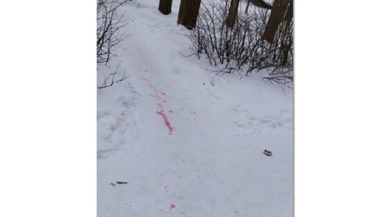 Розовые пятна на снегу, которые чрезвычайно напоминают опасную для животных отраву, заметили собаководы Красноперекопского района неподалеку от места для официального выгула – на улице Павлова, рядом с политехническим колледжем № 24