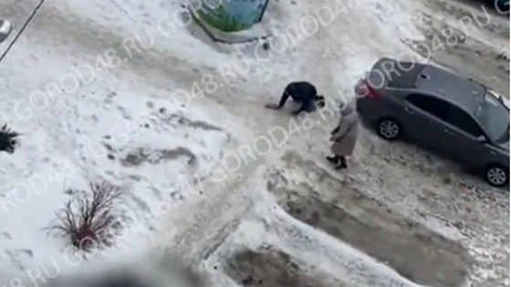 В Липецке из-за гололеда мужчина полз домой на четвереньках