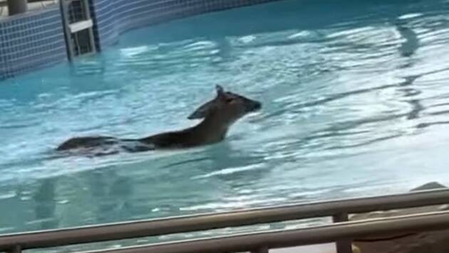 Олень проник на базу отдыха, искупался в бассейне и попал на видео