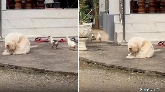 Хитрые утки обманули пса и проложили маршрут мимо коварного зверя: видео