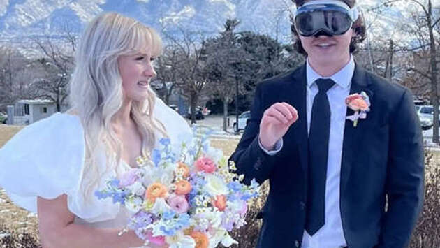 В США жених пришел на свадьбу в очках Apple Pro Vision, пишет издание Сomplex.