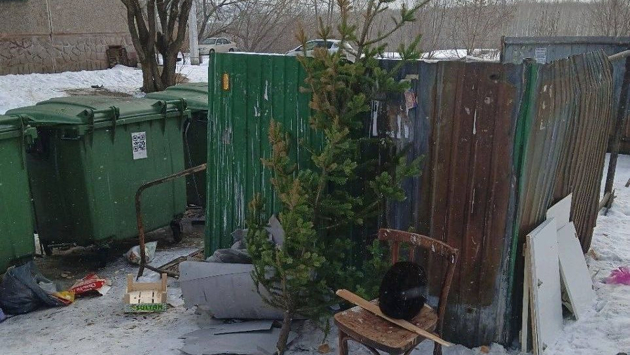 Житель Новокузнецка в Сети разместил фотографию новогодней елки на мусорной площадке. По словам автора снимка, дерево появилось среди отходов 9 марта.